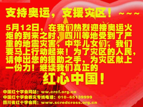 还有众多朋友都通过手机短信和鲜血的形式来为灾区捐献自己的爱心,相信灾难很快就会过去的!