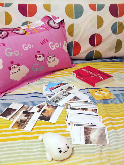 当然还有Show一下我收集到的数十张漂亮卡片和小萝卜头 (不知道他叫什么名字),美好一天,从床上开始,从床上结束。:-)