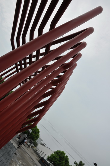2009/08/15 忙碌了近一个星期,主要为了应付这天的检查,这有关咱们世博忙碌一年的重要性。一大早起来就没有停过,整整一个星期的准备,因为涉及到一些公事和政府机关人员的因素,所以照片无法真正意义上的体现出这一天的生活,这里放一张咱们一个星期锻造而成的工厂前门雕塑,对于我来说这应该是这一天比较深刻的印象吧。 :-)