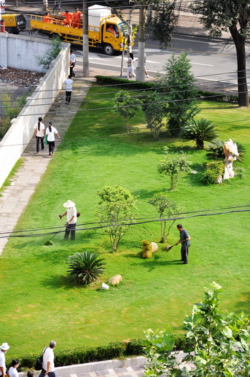 2009/09/01 早上一起来就被楼下修理草地的园丁给吸引住了,站在楼上细细观望了十分钟。 从小课本上就向我们灌述园丁这个概念,而且包括故事书、动画片等等地方出现的园丁基本上都是好人,所以从小就对园丁这个职业充满神秘感。只是现实生活中常常不会觉得园丁的所在,平时看到这些园丁也只觉得他们是整理草地,也许这就是现实与想象中的不同吧。