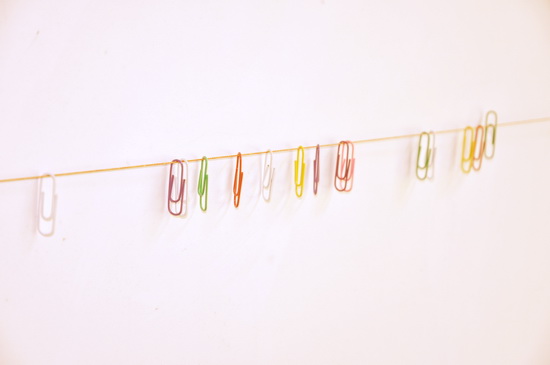 还是拍一张房间里的小景吧,哈,这是我为了挂相片的装置,但是由于时间太久了,挂在上面打印的相片已经发黄,于是全部取下,只留下这一排漂亮的回形针了,虽然有点孤独,但是依然不失美丽……