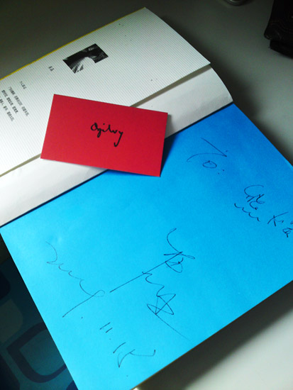 本来想Show一下交流会的照片的,结果我自己没有拍,豆友们拍了却一张都没有发上来,只能亮一下作者签名的书了,还有那张激励着我的名片哈。