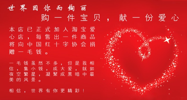 为公益努力的第一步开始了,我相信,我还能做得更好! To the world you may be one person, but to one person you may be the world. 希望各位多多支持,我的淘宝店铺: http://artlive.taobao.com