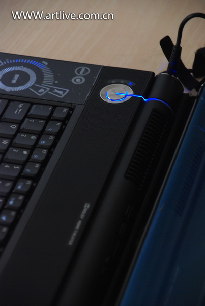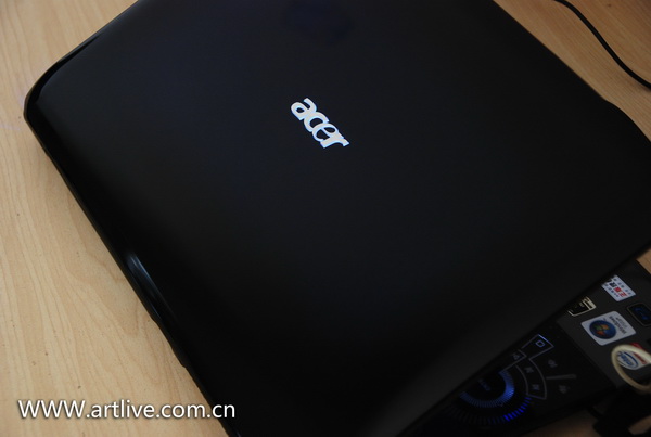 其实这个外壳是深海蓝,只是没有办法拍摄出那种感觉,外壳上面的ACER在通电后会发出白色光芒,煞是好看,这下羡慕MAC的朋友有福了。