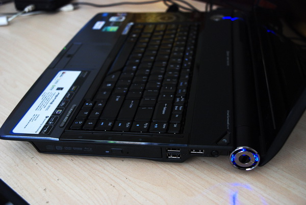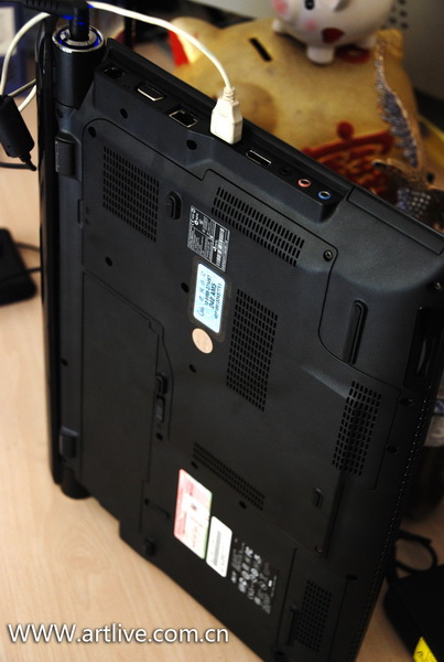右侧面依次安排了蓝光光驱,USB接口,但是这三个USB接口过于紧密,导致稍微大一点的USB设计插进去就会影响其它的USB接口,而且由于底部是熬进去的,键盘面要稍微凸出来一点,所以上面两个USB接口基本上几乎不能接大体积的USB设备,我的联想Y910蓝牙U盘就很难牢固的插进上面两个USB接口。希望ACER设计师在以后的设计中要注意到这样的细节。