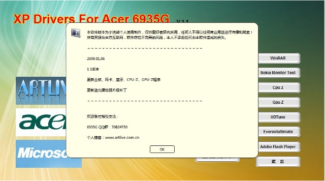 嘿嘿,经过一晚的制作和上传,Acer 6935G的XP驱动新鲜出炉了!