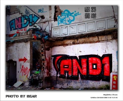 街头文化在长沙似乎是一个比较空缺的,在一个非常破旧的地方,居然看到了涂鸦,好像是一个广告,嘿嘿,当时还是稍有感觉的。