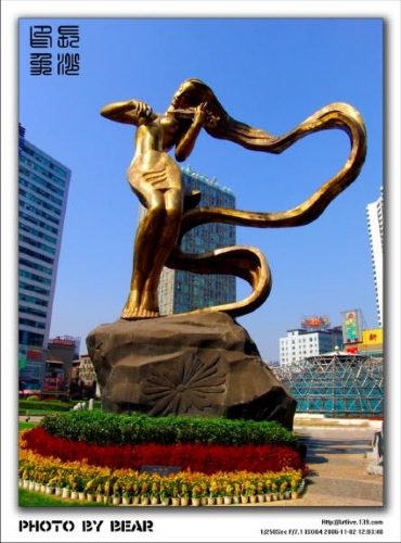 飘逸的头发和优美的琴姿,这个雕塑似真的很好的体现了长沙的风采。