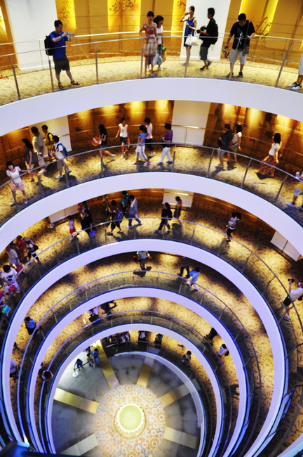 这是下楼的地方,上去是围绕外围排队,下楼是走中心: