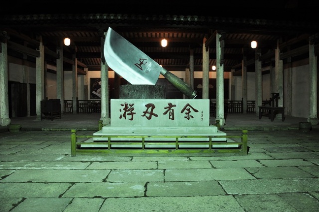 夜晚已经很少有开门的了,这个铸造馆还开着,估计是里面的东西没有谁能够偷走吧,比如说这刀和这锅……