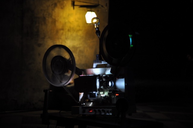 有个老剧院在放露天电影,还是小时候看到《地道战》,但是观察了一下,发现机器已经是比较新的机器了。