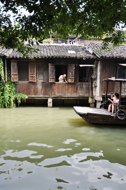验了票进了西栅,有两条路进入正式景区,一条水路一条陆路,都是免费了,我们选择了水路进去,大约乘坐3分钟船就到了。