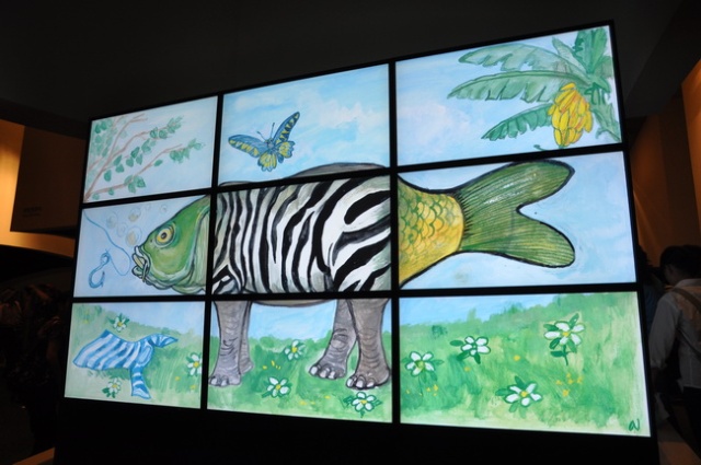 谁说牛头不对马嘴的?看看这些画面吧,就活生生的将各种动物的不同身体部分一通乱对,哈,然后就创造出来了N多千奇百怪的新物种出来,挺有趣的吧! 这是捷克共和国世博馆里面的一种图片,我只拍了其中很少一部分,你有空可以算算几种动物替换不同的位置可以得出多少新物种,估计是一个很庞大的数字吧,呵呵。