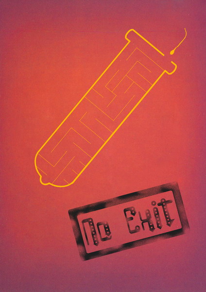 说道Exit你会想到什么? 太多太多,这个词太大太大! 条形码与出口,很容易就结合到一起了,嘿嘿,本来就是一个超简单的作品,不想多解释。 NO Exit: 这个海报其实可以定为几类作品,可以做商业广告,安全套的商业广告,谁也不希望自己的产品上面有Exit,消费者也不愿意买来的商品上面有一个Exit,所以这个时候最好的还是使用No Exit的产品吧,还可以作为公益广告,暗红色的底,貌似危险的警告,可以作预防爱滋或者提倡使用预防措施,为了安全,No Exit。还有更多,我可以想到,你呢?嘿嘿
