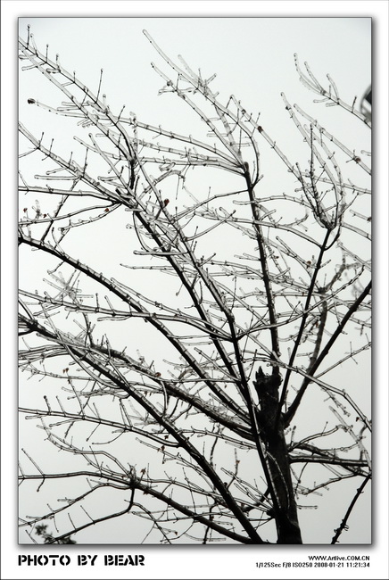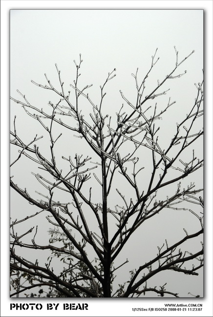 看到这些树枝,会令人想到毛主席说的:银装素裹,分外妖娆。