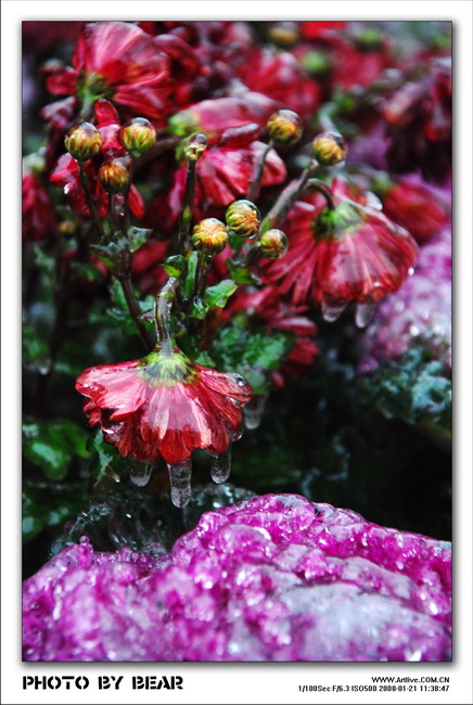 回来的时候,雪已经融化了,但是由于天冷的原因地面上,树枝上都结了厚厚的一层冰,煞是好看。虽然冬天的早觉是最好睡的,但是这样的美景,也让我无法抗拒,一大早冒着寒风的低温,背着相机出门拍这冰天里的景色。所有东西都被裹上了一层厚厚的冰凌,感觉有点像琥珀,很美很美。在零下几度的冰天里面,没有带手套,没有带任何防寒设备,相机镜头马上就结霜了,用仅有的体温温开今天的雾霜,在用冻木的手按动冰冷的快门,那种感觉简直难以用言语形容,但是感觉还是非常兴奋的,因为可以感受到在这冰天雪地里面自己那颗温暖的心激情澎湃。