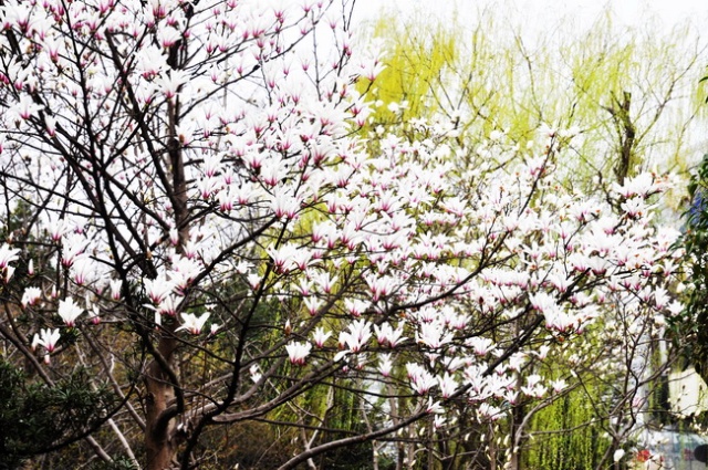 2011.03.20 上海徐汇龙华烈士陵园 ,我发现我每次拍照都是灰蒙蒙的天,也许真的现在蓝天就不多了吧,一场雨,这些花儿开始争相斗艳了,可惜还是有很多花花草草像没有睡醒一样的,估计就会直接这样困到夏天去。