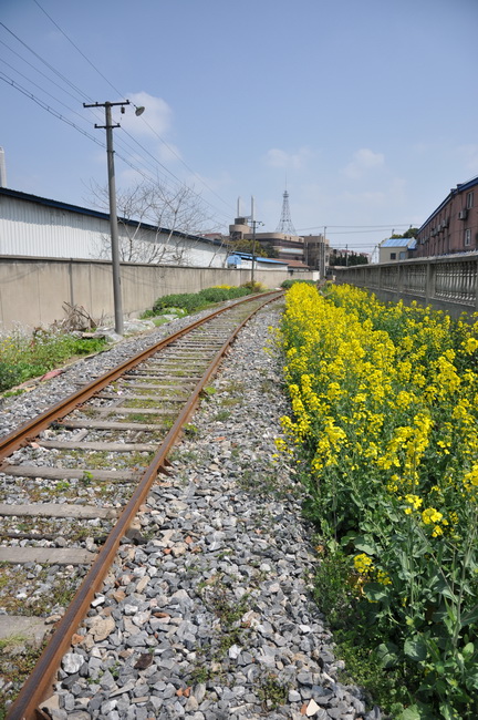 铁路与油菜花,一个是刚劲不阿,一个是柔弱风情,两者在一起,生命与延伸,虽然在这片沉寂的角落,但是却能够给人一种向上的激情,多少会让人产生一丝遐想。